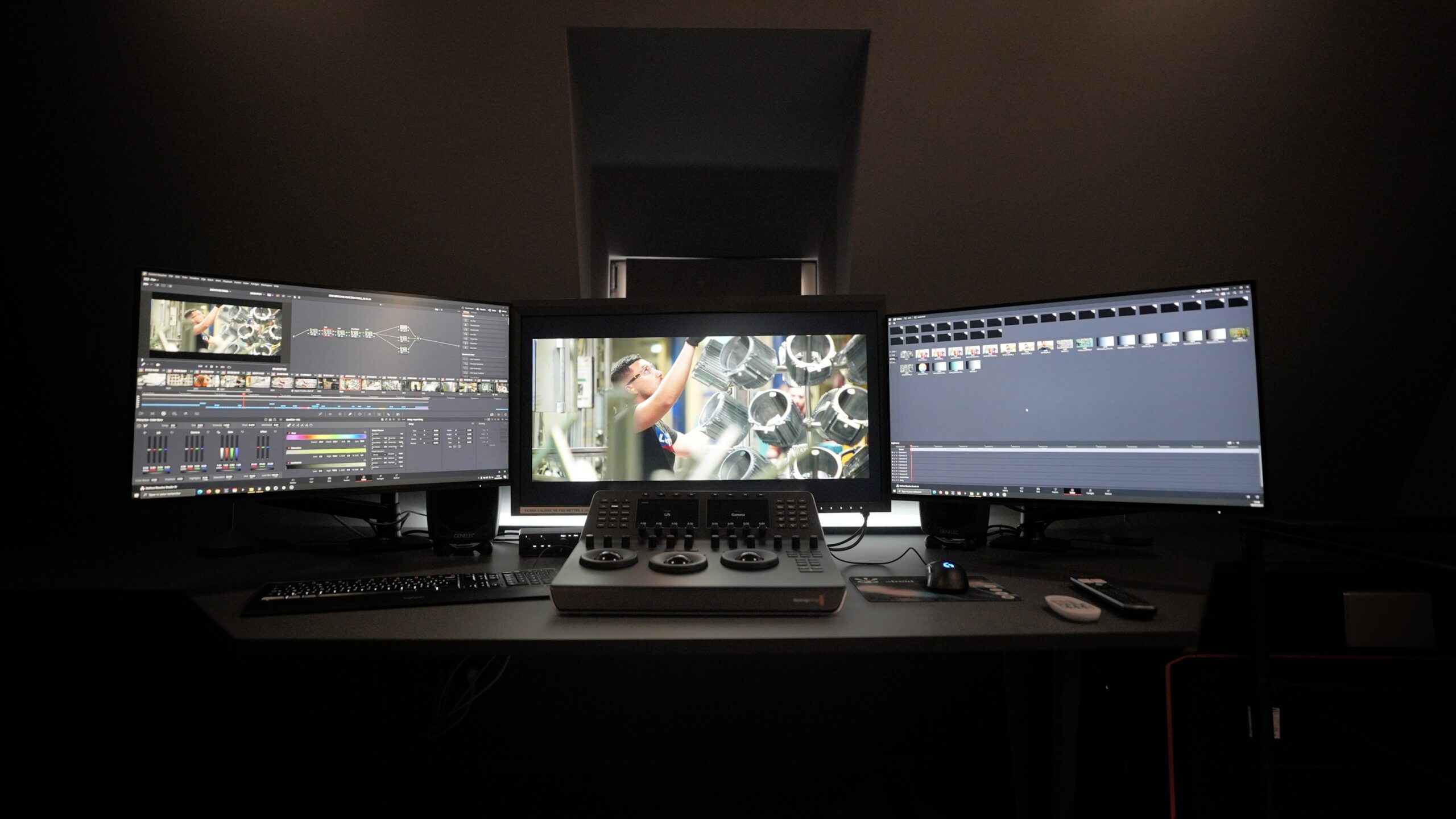 Pour répondre aux besoins de nos productions, autant publicitaires qu’en animation, nous mis en place des stations de montage, étalonnage et mixage, permettant à nos équipes internes d’assurer l’ensemble de la chaîne de valeur et ainsi maitriser la mise en oeuvre technique de bout en bout. Ces moyens techniques sont également mis à dispositions d’intermittents et réalisateurs externes pour leur permettre de finaliser leur projets dans un cadre agréable et idéalement situé au centre ville de Strasbourg.